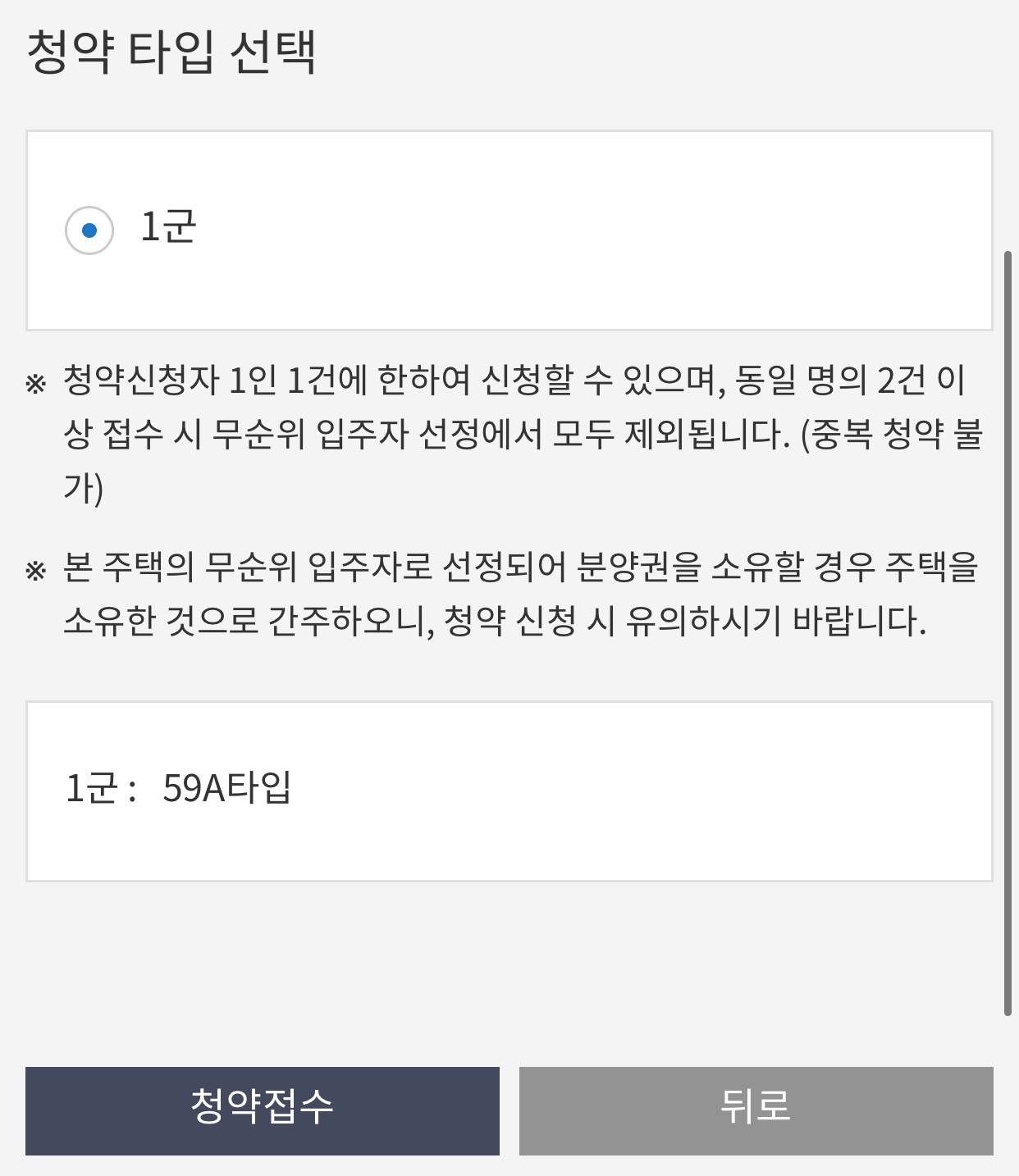 선택의 여지가 없는 1군 : 59A 타입을 선택하고
