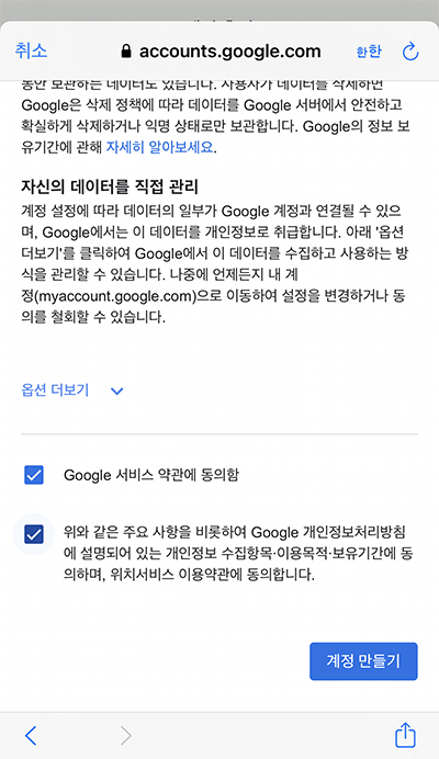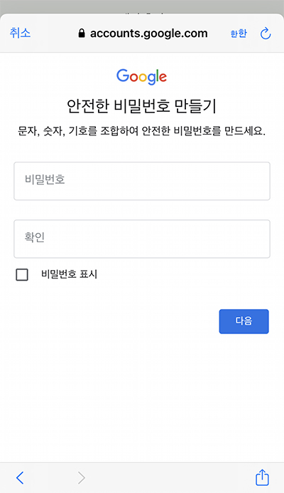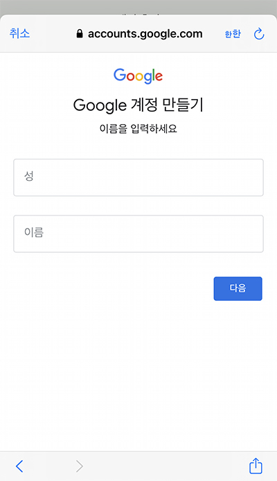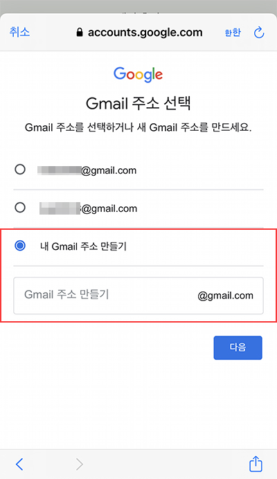 Step.1대로 지메일에서 새로운 지메일 주소를 만든 후,