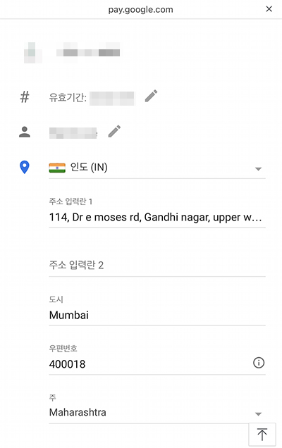 인도 주소를 등록하기 위해서는 구글 페이에 들어가서 인도 주소로 신용카드 정보를 등록하면 된다.