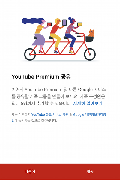 Step.2 (대표 계정) 유튜브 프리미엄 가족 요금제 가입하기