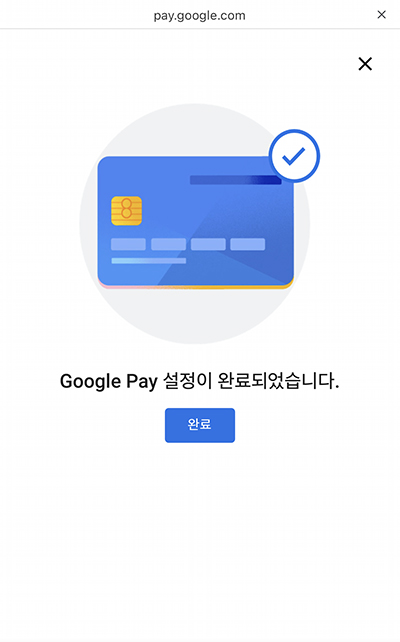 잠시 후 카드가 1불을 결제했다가 추가하는 과정을 거친 후, 설정이 완료된다.