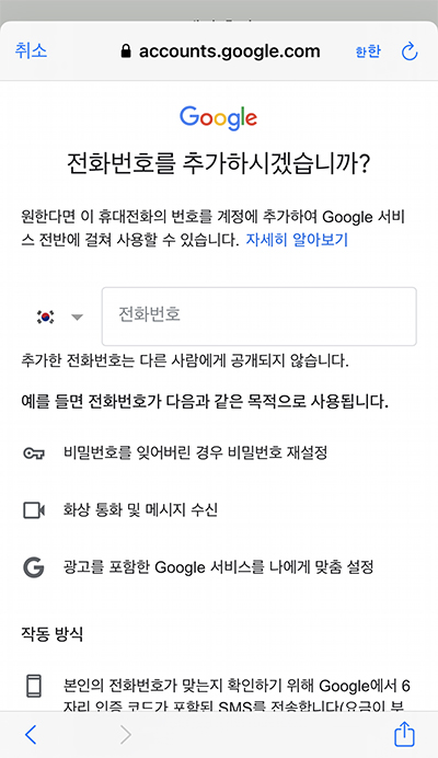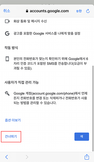 여기가 가장 중요하다!!!! 전화번호를 추가하지 말고 건너뛰기를 해야 내가 한국인임을 걸리지 않을 수 있다.