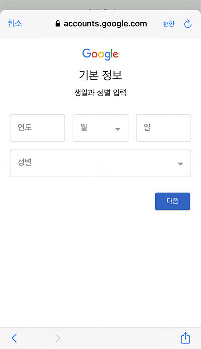 이름과 생일, 성별을 입력한다.