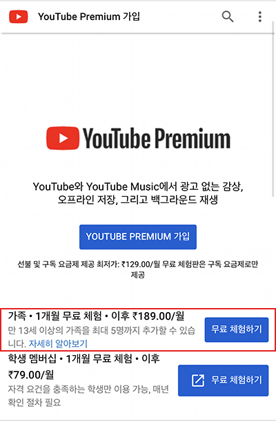 현재 189 루피는 한국 돈으로 약 2820원, 6명으로 나누면 470원이다. 1명당 500원도 안 되는 가격으로 유튜브 프리미엄을 이용할 수 있는 것이다.