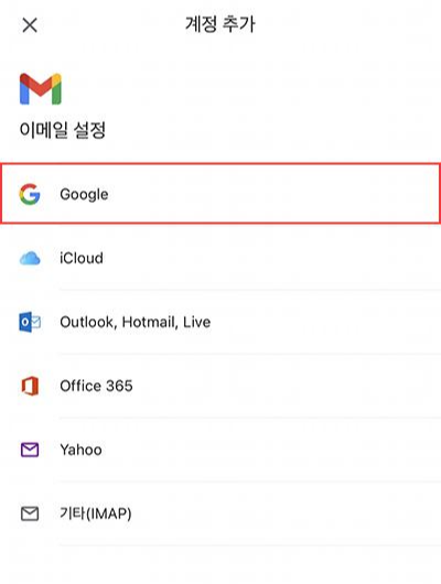 계정을 추가한다. Google을 선택!