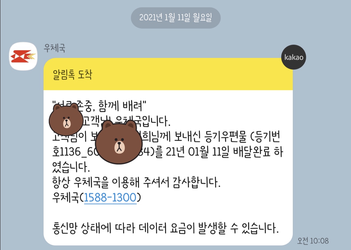 "등기"로 보내달라구... 나는 지금 본사 말고 협력사에 파견을 나와 있는 신세라... 등기를... 보내야 했다.