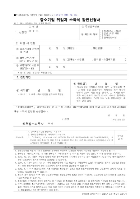 - 2012년 이후 취업자 : 소득세 100% 감면, 제한없음