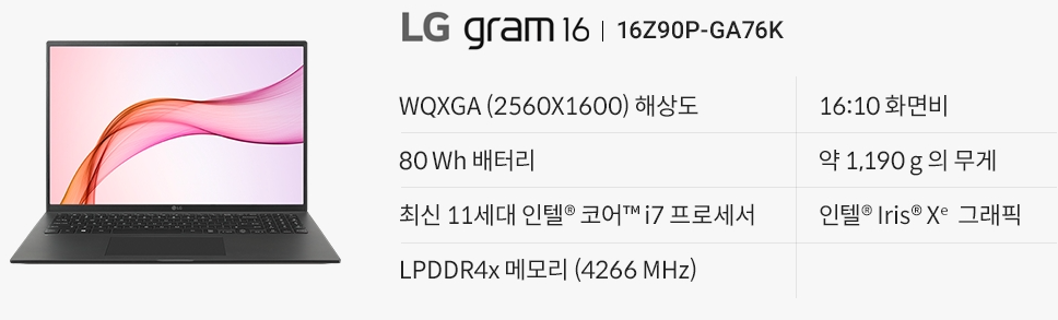 LG전자 그램16 노트북 스노우화이트 16ZD90P-GX70K (i7-1165G7 40.6cm)