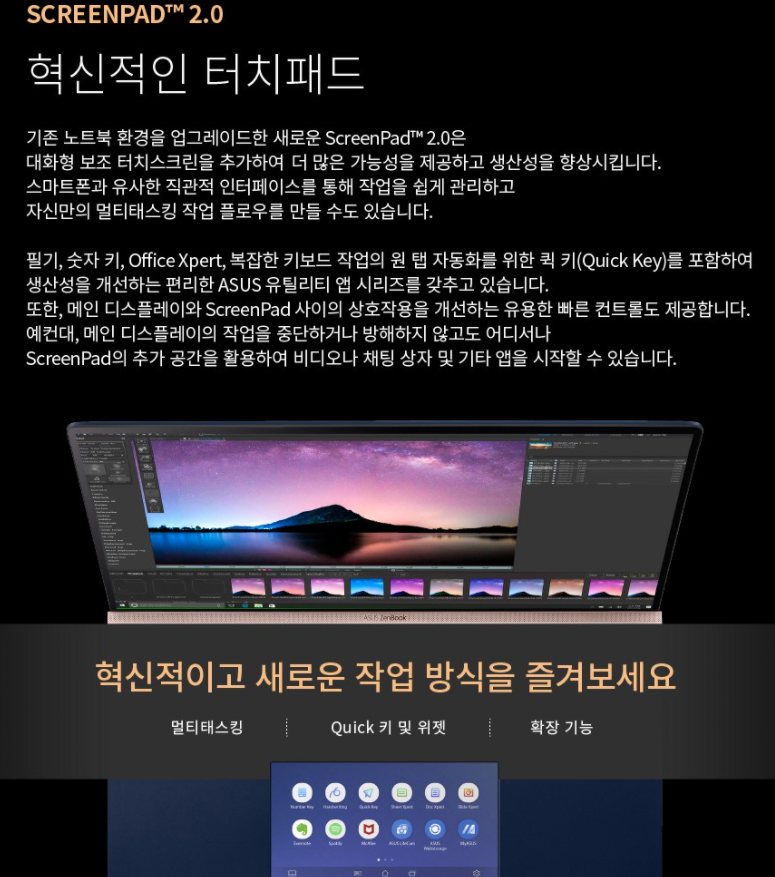 하지만 이 제품의 가장 큰 장점은 멀티태스킹이 가능한 터치패드!! 터치스크린이 추가되어서 훨씬 많은 일을 직관적으로 할 수 있게 된 점이 큰 장점으로 생각된다.