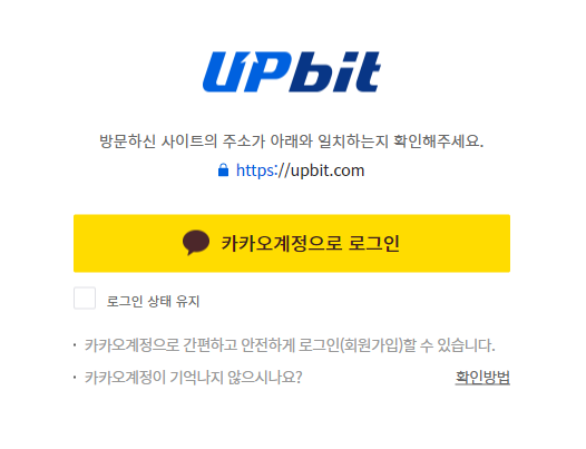 업비트에 로그인은 카카오톡으로 간단하게 할 수 있다.
