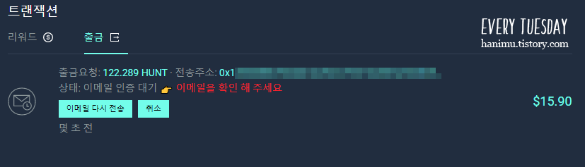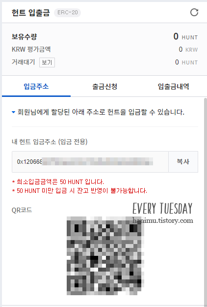 복잡해 보이지만 내 가상화폐 거래소에서 내 헌트 주소만 잘 복사하면 그리 어렵지 않다.