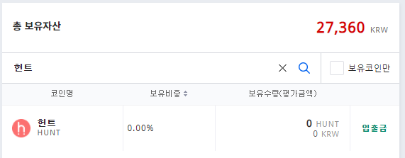 코인명 검색 란에 헌트를 검색하면 헌트코인이 나온다.