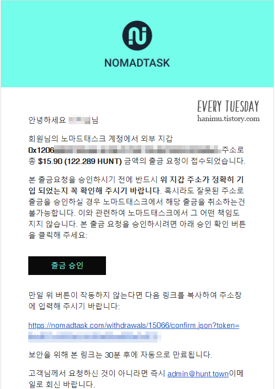 내 이메일 주소로 보내 준 출금 승인 인증링크를 찾아서 출금 승인을 해 주면 인증이 된다.