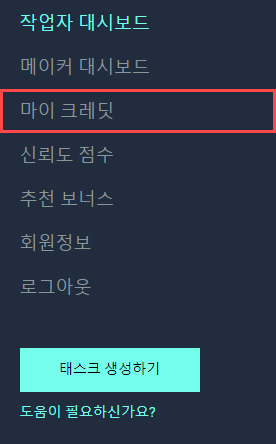 마이 크레딧에 들어가면 출금이 가능한 잔고가 나온다.