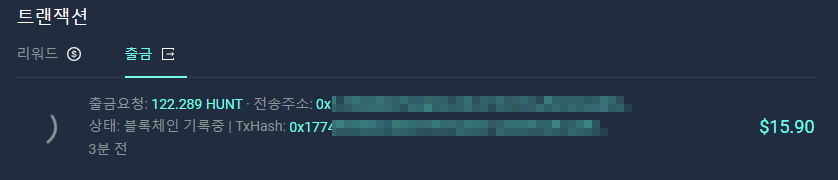 헌트코인을 얼마 받을 수 있는지를 확인할 수 있다.