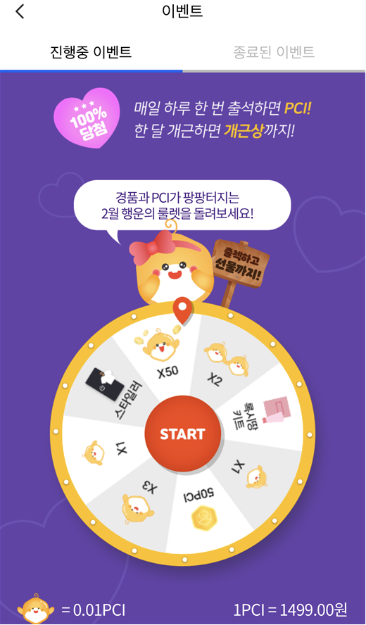매일 출석체크 룰렛 돌리고 스타일러, 록시땅 핸드키트, 그리고 50PCI 적립 쿠폰을 득템하세요~