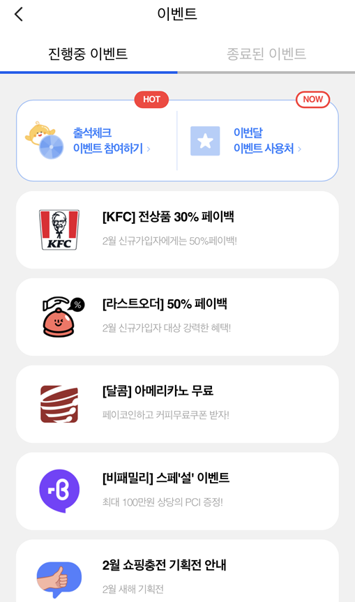 다양한 이벤트를 진행하고 있어서 여기에서 충전을 할 수 있다.